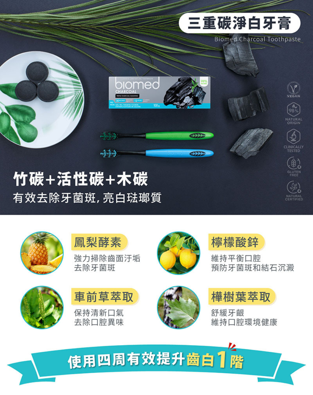 內含竹碳+活性碳+木碳 添加鳳梨酵素